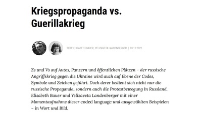 Der russische Angriffskrieg gegen die Ukraine findet auch auf einer Ebene der Codes statt, so Elisabeth Bauer und Yelizaveta Landenberger in ihrem Beitrag für dekoder. Gewisse Symbole, Bilder und Zeichen tauchen vermehrt in Medien und Öffentlichkeit auf und sind zentraler Bestandteil der russischen Kriegspropaganda. Die Autorinnen beschreiben in ihrem Artikel die wichtigsten Symbole und betten sie in den Kriegskontext ein.