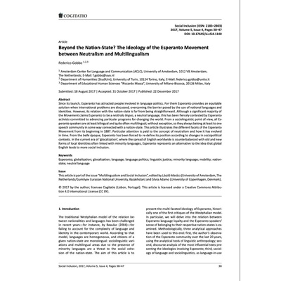 In der aktuellen Phase (1946-heute) definierte sich die Bewegung als Reaktion auf das Kriegsgeschehen neu und versuchte, Esperanto als eine der Arbeitssprachen der UN zu etablieren. Obwohl dies erfolglos blieb, verfestigte sich dadurch endgültig der französische Neutralismus in seiner Anerkennung des Primats der Nationalstaaten. Durch das Aufkommen des Englischen als de facto Lingua franca konnte die Sprache nie die Verbreitung erreichen, auf die sie während ihrer Anfangszeit abzielte. Nach einigem Ringen habe sich die Sprachgemeinschaft mit dieser Situation arrangiert, so Gobbo, und neben einigen kurzlebigen Territorialbestrebungen in Neutral-Moresnet südwestlich von Aachen oder auf der Roseninsel vor Rimini verortet man Esperantujo („Esperantoland“) seit den 1990ern in den Individuen selbst. Sprecher*innen des Esperanto sind per se mehrsprachig und häufig sogar polyglott: Gobbo nennt einen Durchschnitt von 3,3 Sprachen – unter modernen Esperantist*innen gebe es ein Bewusstsein für den Wert von Mehrsprachigkeit, und wer seine Begeisterung für eine Sprache einsetzt, tue dies häufig auch für die Rechte anderer, ihre jeweilige Sprache zu erhalten.