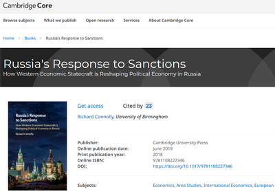 Richard Connolly, der lange an der University of Birmingham forschte und mittlerweile ein Londoner Beratungsunternehmen leitet, stellt in seinem Buch drei Fragen: Welchen Effekt hatten die 2014 als Reaktion auf Russlands Annexion der Krim und die militärische Intervention im Donbass verhängten Sanktionen? Wie reagierte der russische Staat darauf? Und welche Konsequenzen löste beides auf die russische Wirtschaft und ihre Integration in die Weltwirtschaft aus? Die Arbeit will drei Schwächen der Sanktionsforschung umgehen: Erstens konzentriere sich die Analyse des sanktionierten Staates oft auf dessen Regimetyp und vernachlässige andere Institutionen. Zweitens würden die Besonderheiten der politischen Ökonomie des Ziellandes vernachlässigt, die es jedoch mitunter erlauben, die Wirkung von Sanktionen abzumildern. Und drittens sei es wichtig, eine globale Perspektive einzunehmen und zu fragen, wie das sanktionierte Land in die Weltwirtschaft eingebunden sei.