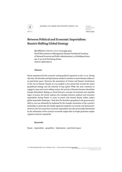 Diese Symbiose, so Matveev, kam spätestens mit der Annexion der Krim durch Russland im Jahr 2014 zu einem Ende. Seitdem intensiviere sich Russlands geopolitischer Imperialismus, während gleichzeitig die ökonomische Expansionsdynamik nachlasse. Im Jahr 2022 sind russische Unternehmen aufgrund der politischen Expansionsabsichten des Kreml sogar mit einem massiven Rückgang ihrer Möglichkeiten auf internationalen Märkten konfrontiert. Ist Putin nicht mehr auf die Unterstützung der Wirtschaftselite angewiesen?