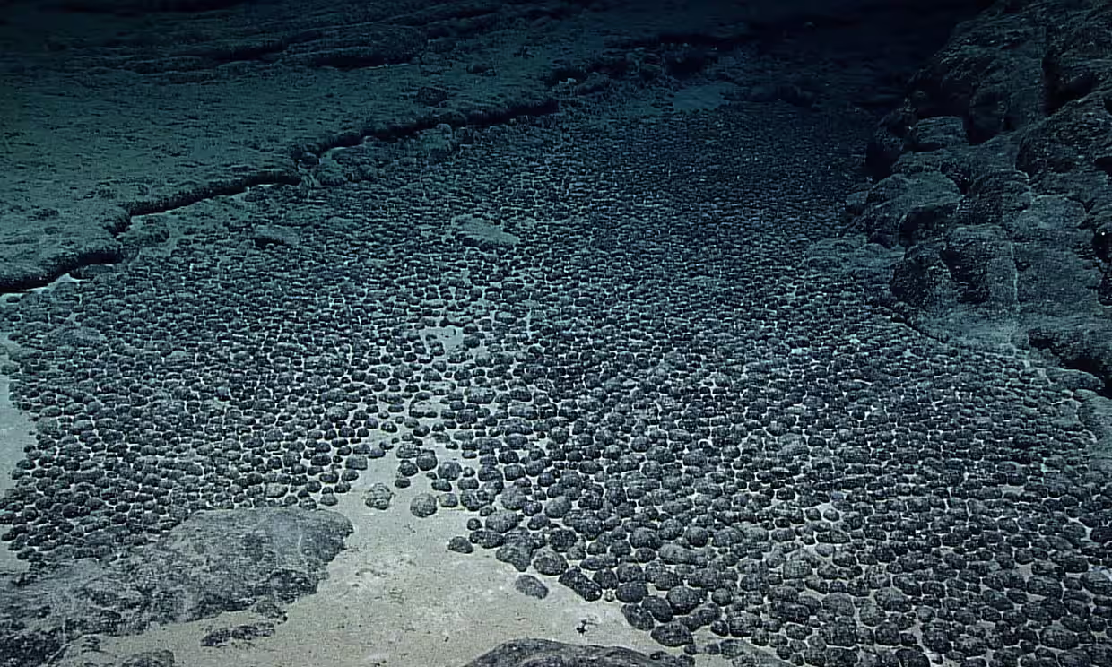 Abhilfe gegen menschenunwürdige Abbaumethoden und geopolitische Abhängigkeiten könnten Manganknollen bringen. Diese liegen kartoffelförmig auf dem Meeresboden der Tiefsee (siehe Abbildung 1) oder stecken dort im weichen Sediment. Generell bilden sich Manganknollen um Gegenstände herum, wie etwa Muschelschalen, Haifischzähne oder Steinfragmente, und wachsen im Verlauf von einer Million Jahre nur um rund einen Zentimeter. Ihr Wachstum gehört damit zu einem der langsamsten geologischen Phänomene.