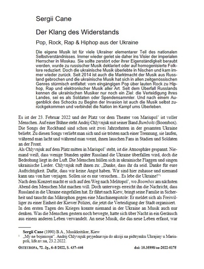 Für viele ukrainische Kulturschaffende ist der Krieg ein Einschnitt und eine radikale Veränderung. Die Kultur nimmt im Krieg eine existenzielle Rolle ein: Sie ist ein Ausdruck nationaler und kultureller Autonomie und folglich Ausdruck einer Distanzierung und Emanzipation von russischen Machtstrukturen. Musiker, die vorher unpolitisch waren, sind auf Tourneen in Europa und den USA und werben für die Unterstützung der Ukraine. Die Kultur im Krieg hat zweierlei Aufgaben: Sie ist ein Hoffnung spendendes, sinnstiftendes Element und Widerstand zugleich.