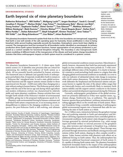 Bereits die 2009 erschienene Studie von Rockström et al. zeigte, dass drei der damals quantifizierbaren Belastungsgrenzen, nämlich der Klimawandel, die biogeochemischen Kreisläufe und der Zustand der Biosphäre, überschritten waren.