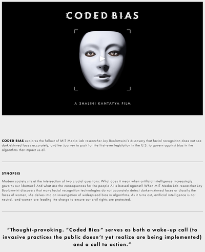 Der Film Coded Bias veranschaulicht ein fundamentales Problem maschineller Lernverfahren in Form der verfügbaren Daten. Darüber hinaus wird der Missbrauch derartiger Algorithmen für gesellschaftsschädigende Zwecke problematisiert. Solange die Trainingsdaten nur einen Bruchteil der Weltbevölkerung repräsentieren, werden Algorithmen weiterhin verzerrte Ergebnisse liefern. Das Riskante daran ist, dass sich selbst EntwicklerInnen dieser Systeme häufig vorab keine Vorstellungen über die möglichen Biases machen können und dass maschinelle Lernverfahren im großen Stil genutzt werden können, um Individuen in ihren Entscheidungen zu beeinflussen.